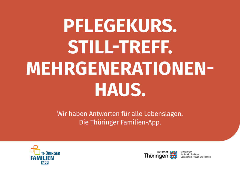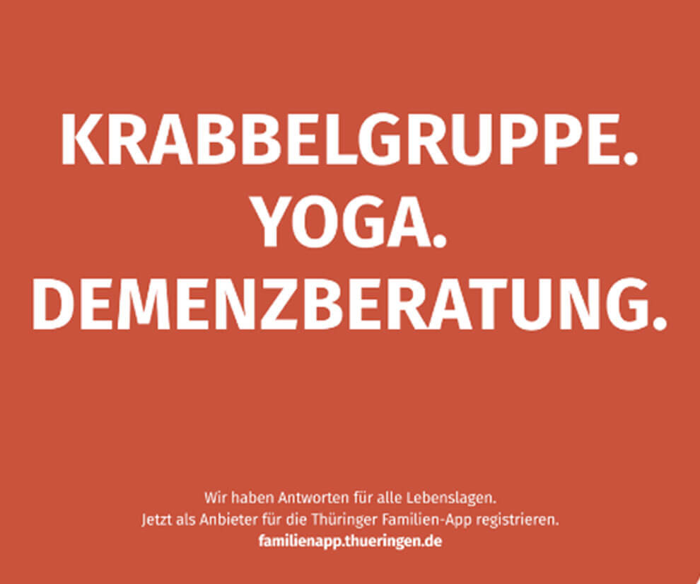 Die Thüringer Familien-App muss an den Mensch gebracht werden. Aber: wie? Noch dazu, da eine App für alles natürlich eine ganz schön lange Liste an unterschiedlichen Themen mit sich bringt – vor allem, wenn es um Familienangebote geht. Dazu braucht es also eine passende Kampagne, die die App bewirbt, ihre Vorteile aufzeigt und nicht den Fehler macht, es handele sich lediglich um eine weitere App.
